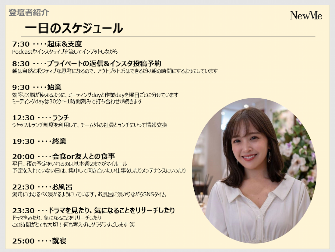 笹川:中川さんは地頭が良かったり、実力があったり、仕事にしっかり向き合う方という前提があるにしろ、自分のその時の気持ちや直感を大事にしながら、次に繋げるというのが本当に素敵ですね。中川さんのNewMe Storyの記事私も大好きですが、司会の勉強を始めたり、ライフの決断もそうですが、お仕事でもご自身らしい決断をし続けていらっしゃると思いました!