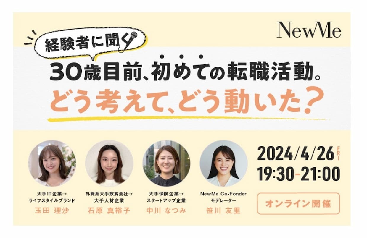 笹川:なるほど、やっぱり中川さんの器の大きさをどの話にも感じるんですけども(笑)。エージェントの方にふわっと相談したところから、今のような「軸」が形成されたというお話もありました。NewMeにも色々なバックボーンのキャリアアドバイザーがいて、仕事と子育てを両立していたり、色々なスタートアップを経験された人たちもいたり、大手人材会社に在籍していたりなど。エージェントの人との相性やどんなアドバイスをくれるかなど、そういったところも見極めながら転職活動を進めていくと、より良い転職活動になるのかなと思いました。