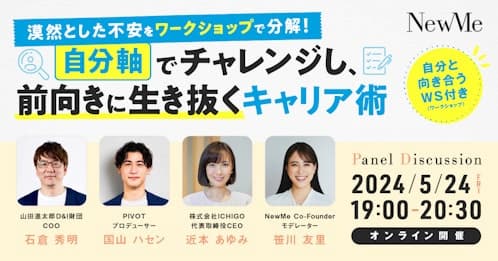 NewMeでは女性×キャリアを共通テーマとしながら、多様な働き方・生き方を届けていくことを目的に様々なイベントを開催しております。今回は、自分軸でチャレンジを続ける3名のゲストをお呼びして、「自分軸でチャレンジし、前向きに生き抜くキャリア術」というテーマでオンラインセミナーを開催しました。