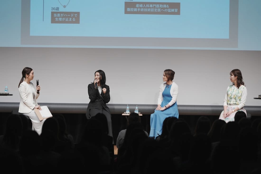 (左から順に)フリーアナウンサー後藤晴菜さん、グレイス杉山クリニック SHIBUYA院長 岡田 有香さん、渋谷区副区長 松澤 香さん、株式会社Copia 人事部長 高嶋 恵美さん