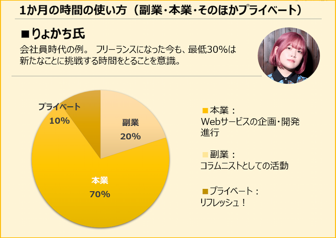 ただ、今は本業は「生活するためのこと」と明確に位置づけていて、その代わりに副業で好きなことをするというスタイルでやっています。「好きなこと」で生活できる比率を少しずつ増やしたいなと思っていて、りょかちさんのような仕事スタイルがあこがれだと思うのでいつか実現できたらいいなと思っています。「その時やりたいこと」をこれからも頑張りたいと思います。