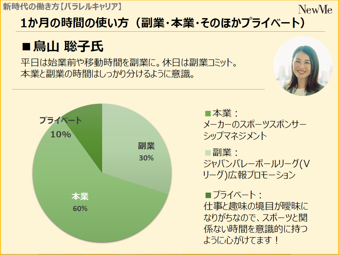 鳥山:さきほど篠原さんがおっしゃっていた通りで、副業側の人にとってそれは本業だということを最初から肝に銘じています。普段「副業」と言う際にサブの意味の「副」をなるべく使わないようにしているのもそんな気持ちがあります。自分も仕事との向き合い方が100%でないと嫌なのと、価値がある思ったことには全力でコミットしたいと思っているので、副業を始めたときに腹をくくって「この数年は私は200%で仕事をするんだ!」と思いましたし、そこで成果を出さないとわざわざ副業をしている意味がないと思いました。
