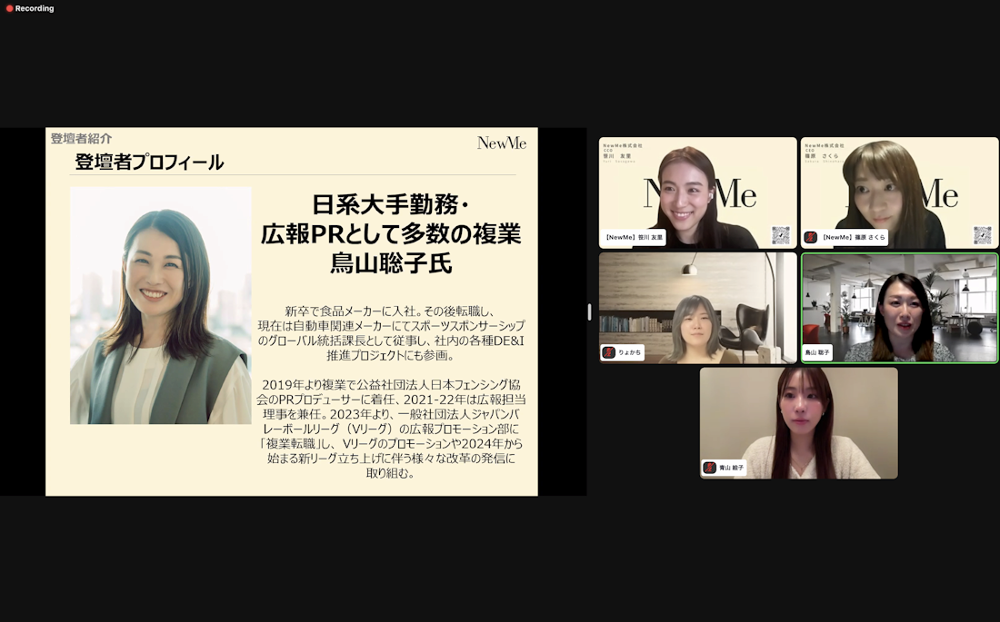 鳥山:私は普段日系大手企業に勤めているので、自分のジョブローテーションを自分の意志だけで決めることはできません。社会人3年目の時に転職をしていて、その際に営業から広報職に転換したことが功を奏して、コミュニケーション、PR、ブランディングに興味を持てたのですが、そこでマルチにスキルを身に付けたいと思っても運次第なところがあり、モヤっとしていました。