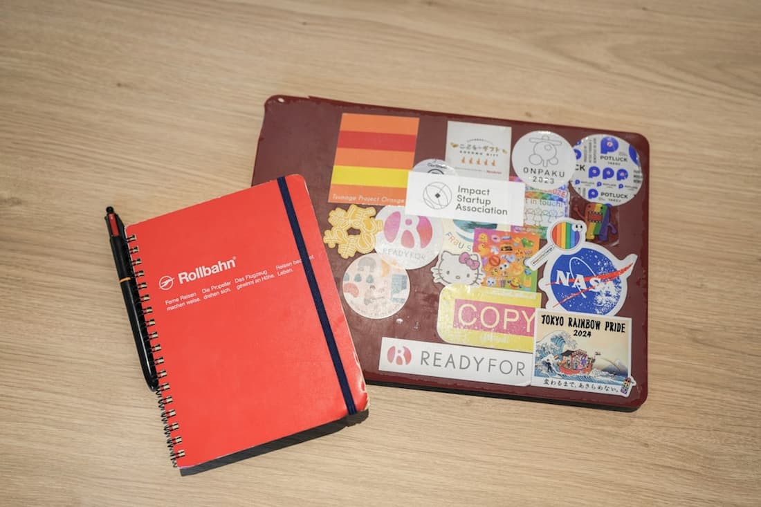 こちらのノートです。この鮮やかな赤い色にしているのには実は強い理由がありまして。目立つ色だと無くさないからです(笑)バッグの中でも一瞬で発見できるなどこういった小さな部分にも自分なりのこだわりがあります。日々の業務はPC中心ですが、一日の始まりは、まずはTODOリストをこのノートに書き出すところから。一つ一つ線を引いて潰していくのですが、可視化した上で達成感も感じられるので敢えてアナログに書き出すようにしています。