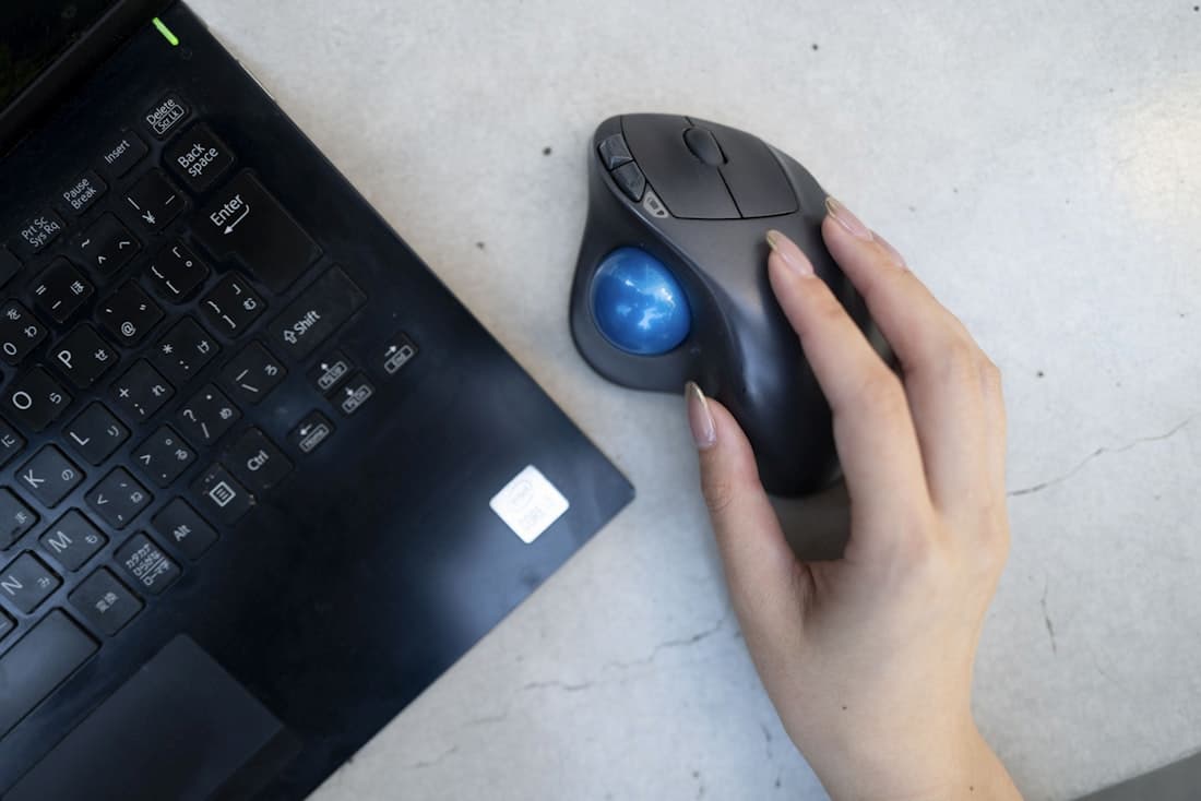 約4年前、マウス操作のしすぎで腱鞘炎になったことを機にトラックボールマウスを使い始めました。トラックボールの最大のメリットは、長時間のマウス操作でも腕や肩が疲れにくい点です。通常のマウスと違い、本体を動かす必要がなく、資料作成など長時間の作業が格段に楽になります。
