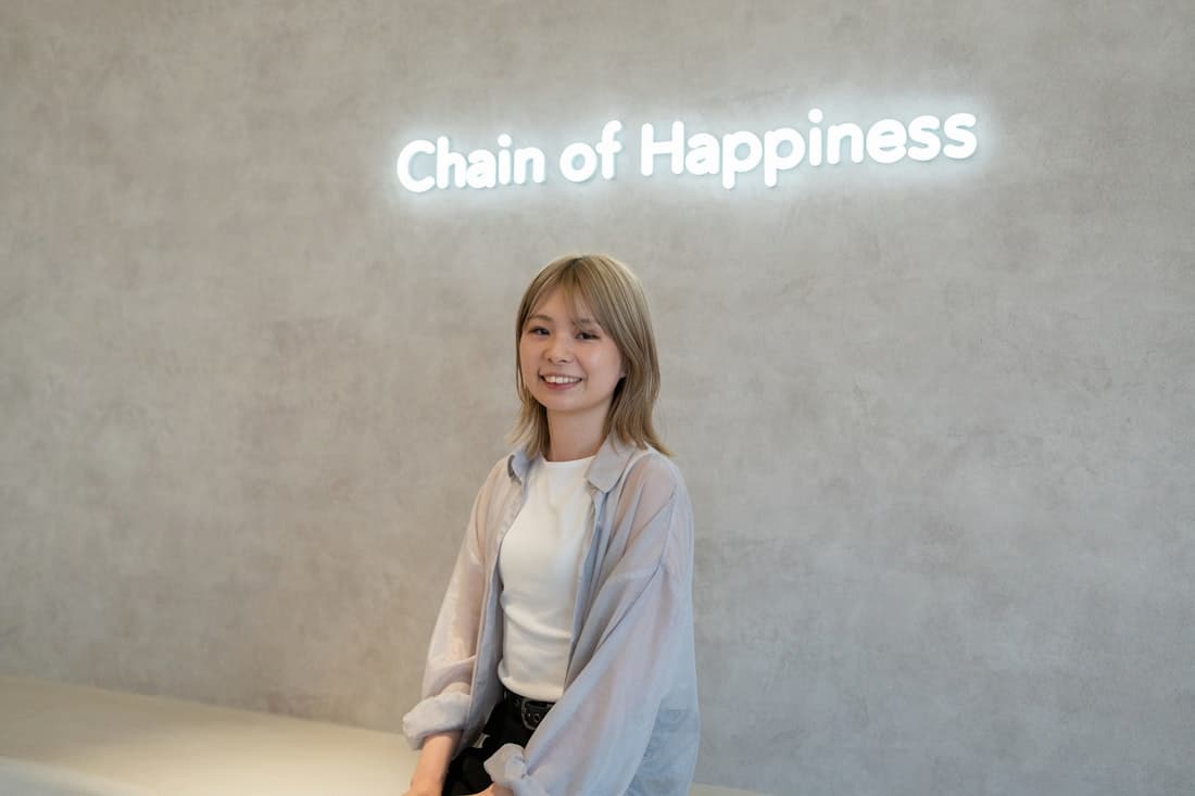 I-neはブランド活動を通じて、幸せの連鎖があふれる社会の実現に挑戦することをミッションとして掲げています。ブランドの成長、会社の成長が社会全体の幸せの連鎖に繋がるという共通認識を全員が持っているので、議論が常に活発になるというところが良い環境と感じています。また、リスペクトの文化が浸透しており、たとえ入社したてでも、正しい数字や事実を添えて提案すればしっかり意見が通りますし、とにかくフラットなので、年齢や社歴関係なく、やりがいを持って仕事に向き合える環境です。